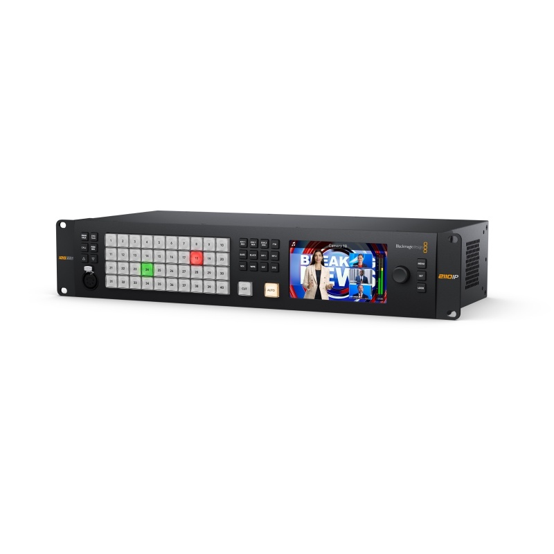 The ATEM Monitoring Rack Panel 40 is a video converter built into a larger 2RU rack-mount ATEM switcher control panel! It features 40 buttons for controlling a local ATEM switcher, plus a front panel talkback connection for communication. The video converter has two redundant SMPTE-2110 10G Ethernet connections, which are converted to 2 x 12G-SDI outputs and an HDMI output. Video is also displayed on the converter's large 5-inch built-in LCD screen, giving you convenient local rack monitoring!