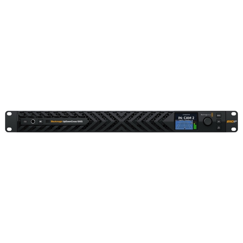 The Blackmagic UpDownCross 100G is a powerful 8-channel standards converter with native SMPTE-2110 connections via 100G Ethernet. It converts up to 8 separate channels of SD, HD and Ultra HD video to any other standard simultaneously. The professional 1RU design features front-to-back cooling that's very quiet! It also includes redundant 100G Ethernet for full SMPTE-2022-7 compliance, dual redundant AC power supplies and a separate NMOS control port for connecting to control networks!