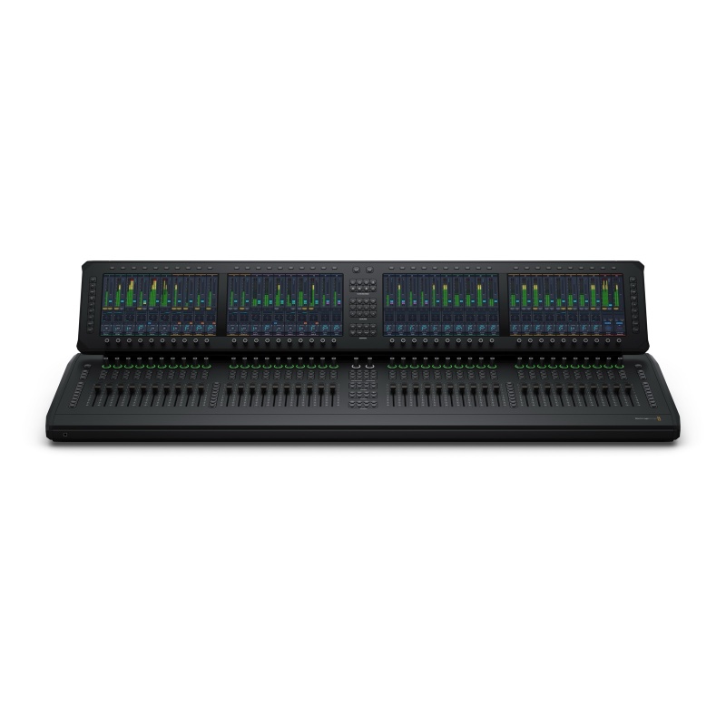 Fairlight Live Audio Panel 40 is a desktop control surface with 40 motorized faders and four large touchscreen displays, designed for professional live audio mixing with Fairlight Live. Controls include layers, bus, matrix, aux, VCA, sub-masters and talkback for fast hands-on access to your mix. The touchscreens display channel strip information, levels, EQ, dynamics processing and plug-in interfaces. Ideal for large live broadcasts. Fully integrated with Fairlight Live.