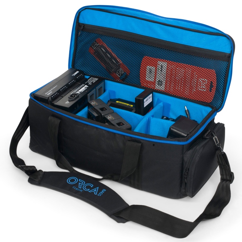 The Orca OR-128 Classic Universal Accessory Case was designed to carry and protect many types of sensitive equipment, including lenses, recording devices, chargers, batteries, small lights, small cameras, matte boxes, and small monitors.